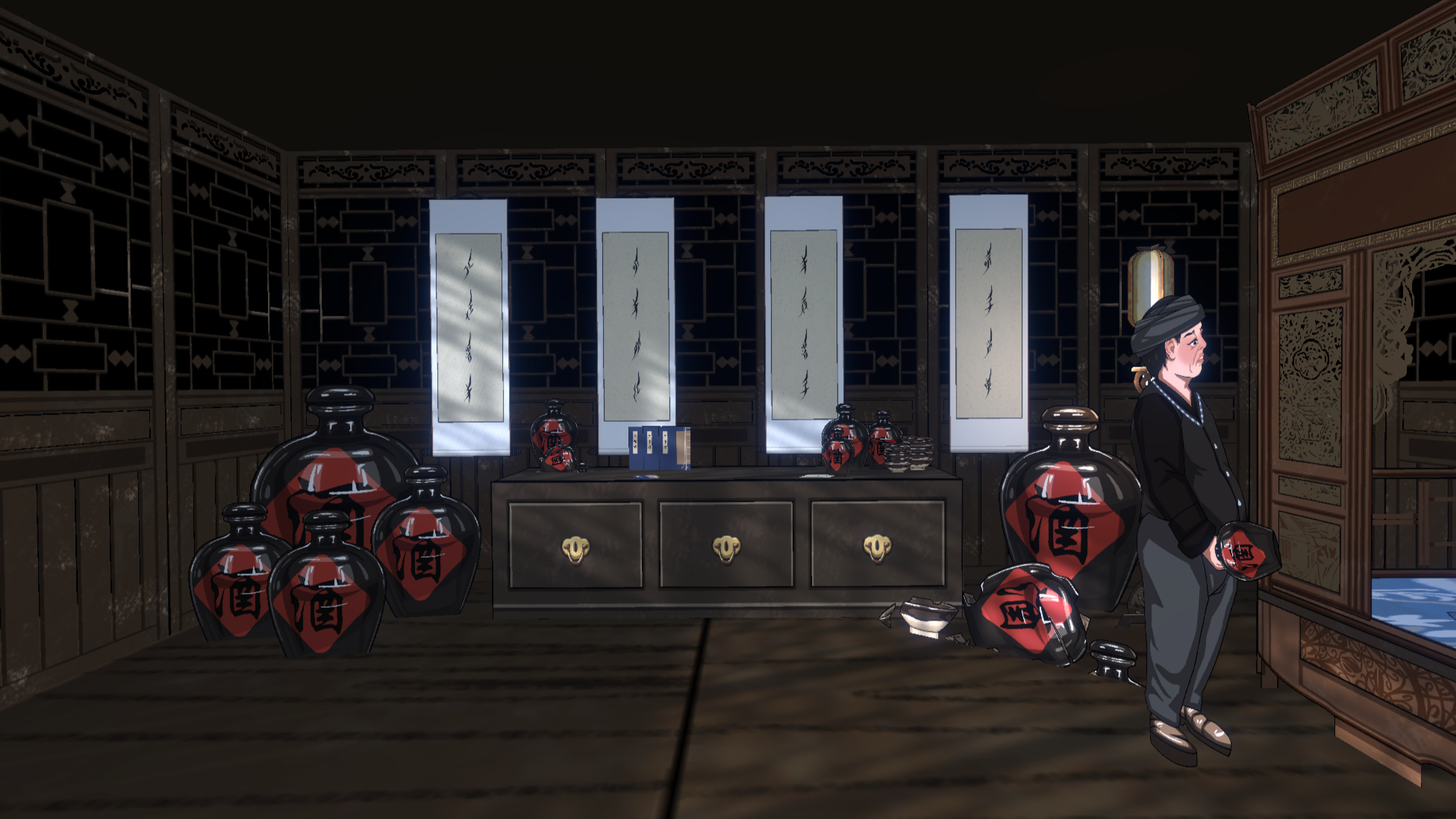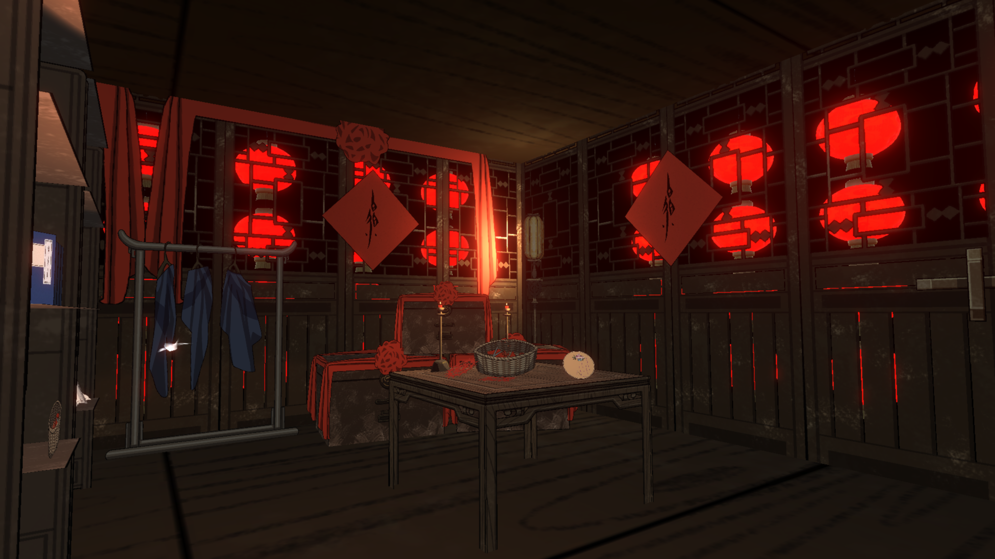 团队和画师沟通了每个场景的目标氛围和情绪。整体设计大量参考中式美学插画,房间内部陈设考据了明清时期的民居资料。