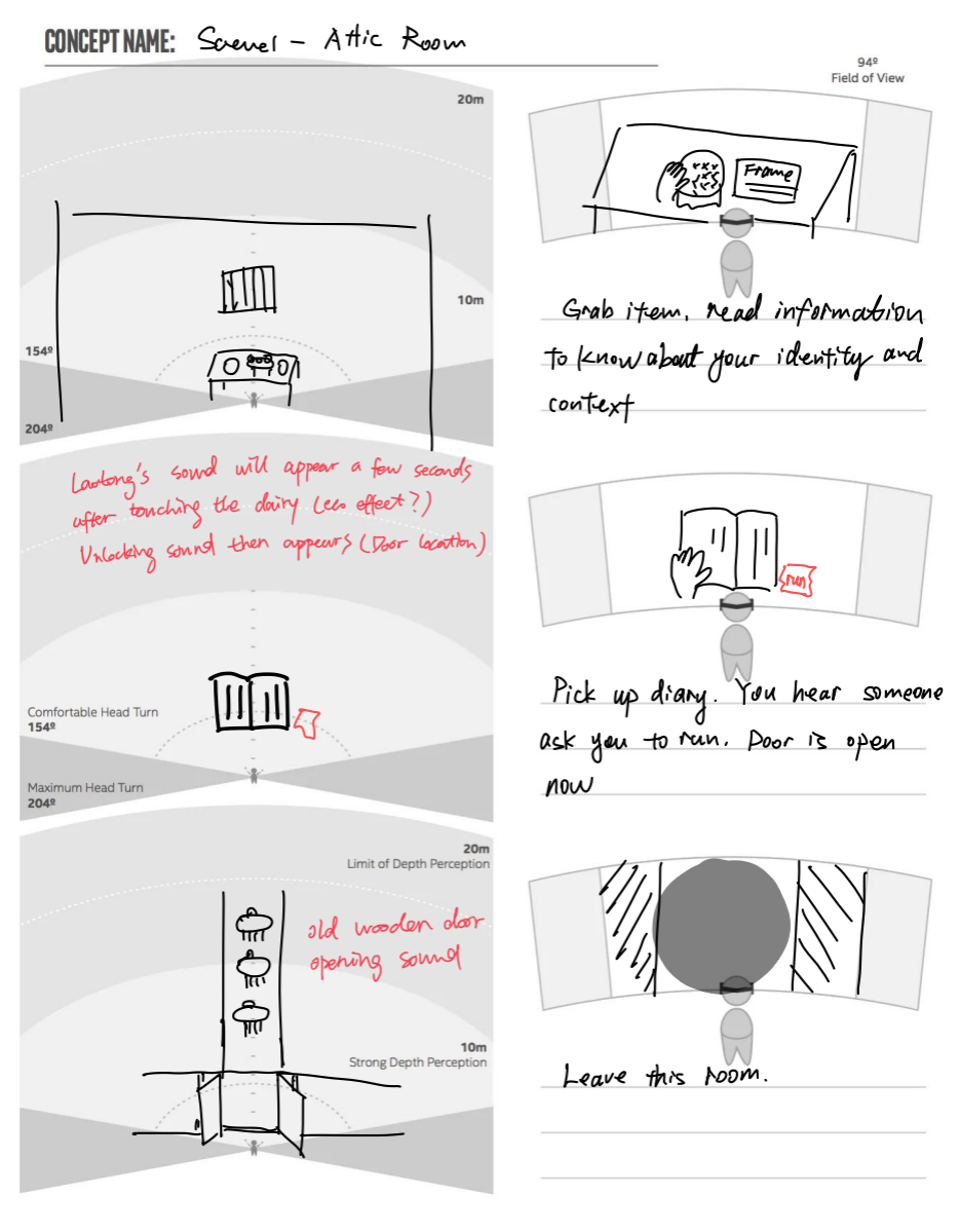 在故事板绘制阶段,我们同时对场景搭建、特效、环境音效和交互行为做出初步构思,以辅助后续代码脚本的编写。