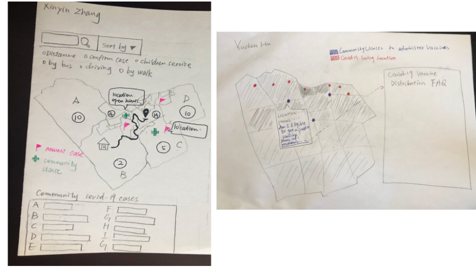 团队集思广益,每位团员都绘制了地图和交互草图。最终我和Yuchen的设计被选中推进。