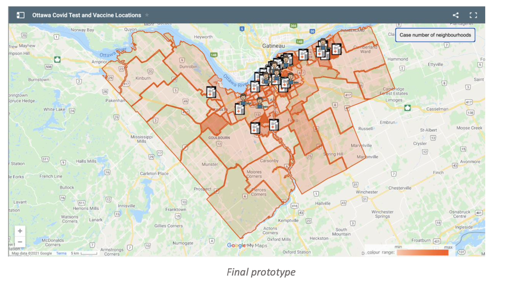我们团队计划使用 Google My Map和 Tableau 创建交互式地图,快速向用户通报渥太华社区的最新新冠病例,并及时更新显示可提供新冠检测和疫苗接种的诊所。