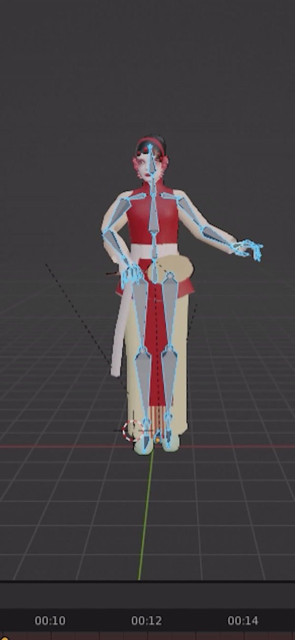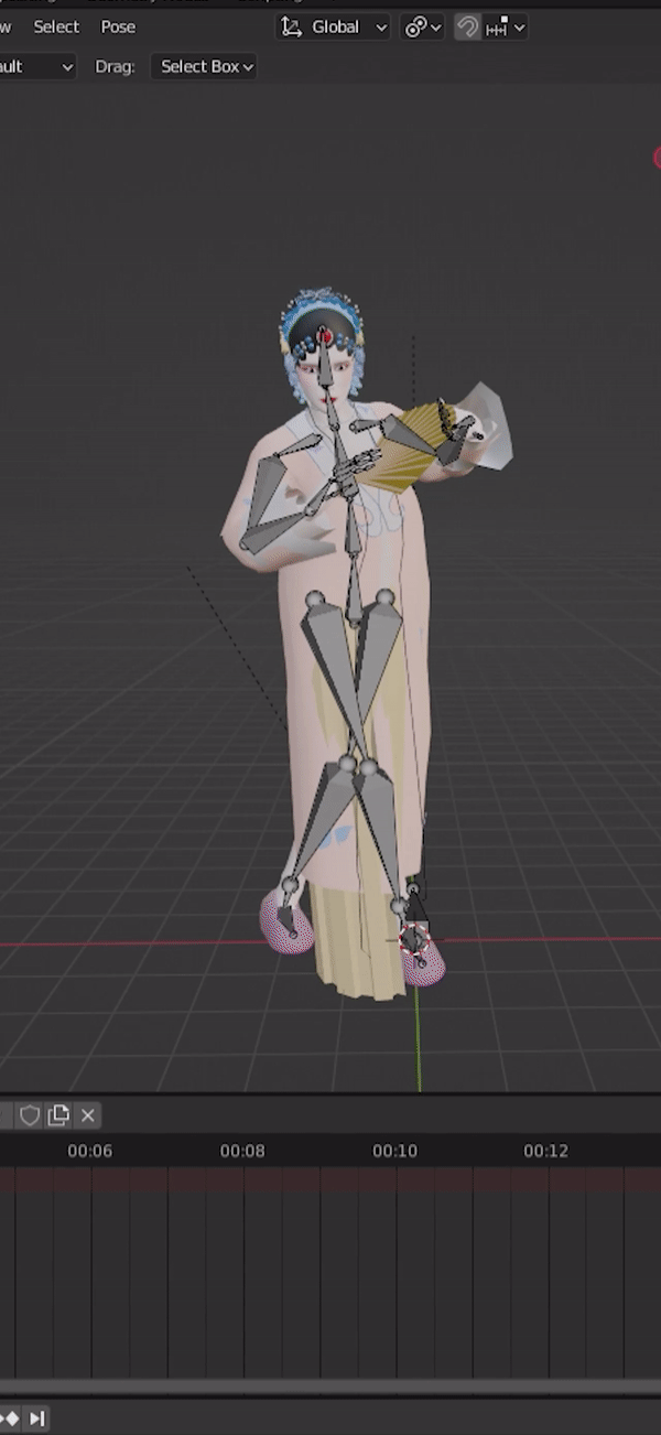 The postures were keyframed animated in Blender according to Master Jiqing Zhang’s version of Wandering in the Garden.