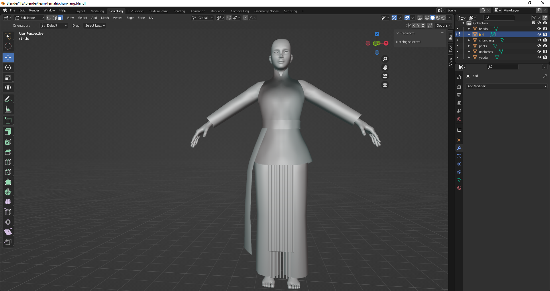 Kun Opera was born in Ming Dynasty, so the costumes and accessories are influenced by the clothing at that time. I modelled and sculpted the two main characters in Blender after researching the historical clothing and current opera costumes.