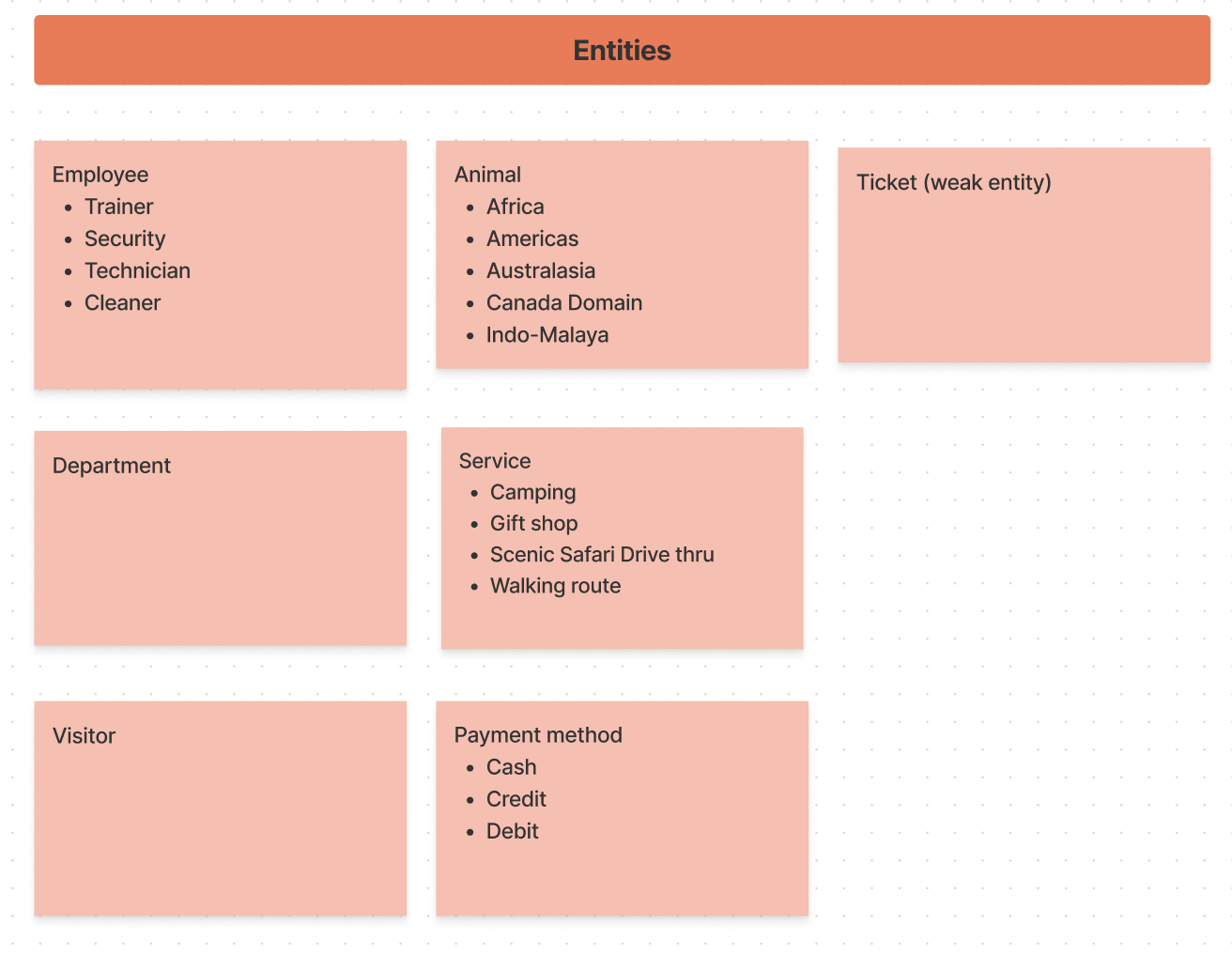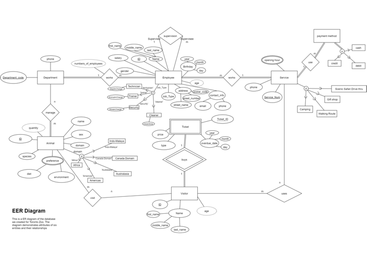 Toronto ZOO has more than 5000 animals representing over 500 species. For such a large zoo, tracking animals, employees, and events will be a heavy task. We are going to design a database for them to