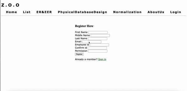 Z.O.O is a SQL database helping Toronto Zoo update personnel changes and animals’ states at the back end and make it faster and easier to find an archive in the system.